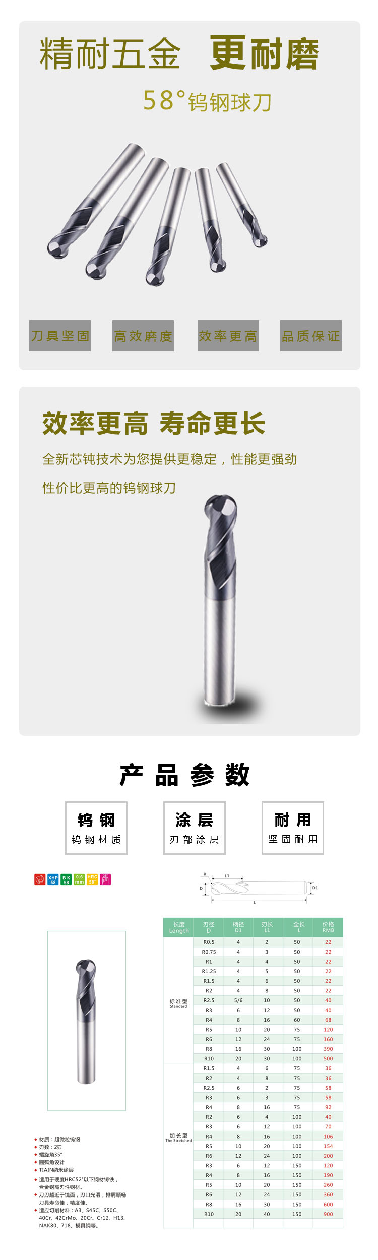58°整體硬質(zhì)合金2刃球刀